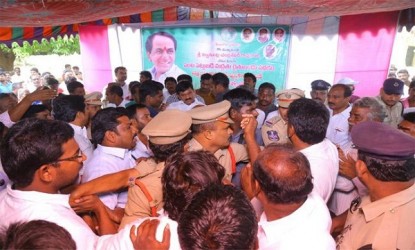 ఖమ్మం జిల్లాలో వైరా నియోజకవర్గంలో పెదమునగల గ్రామంలో బుధవారం రైతుబంధు చెక్కుల పంపిణీ సందర్భంగా తెరాస ఎంపి పొంగులేటి శ్రీనివాస్ రెడ్డి, తెరాస ఎమ్మెల్యే మదన్ లాల్ వర్గీయులు ఒకరినొకరు కొట్టుకొనేవరకు వెళ్ళారు. కార్యక్రమం మొదలయ్యాక మొదట ఎమ్మెల్యే మదన్ లాల్ మాట్లాడారు. ఆ తరువాత ఎంపి పొంగులేటి మాట్లాడారు. అనంతరం ఎమ్మెల్యే ఆదేశం మేరకు అధికారులు చెక్కుల పంపిణీకి సిద్దం అవుతుంటే, ఎంపి అనుచరుడు, వైరా మార్కెట్ కమిటీ డైరెక్టర్ కోసూరి శ్రీను వేదిక మీదకు వచ్చి మైక్ లో ఏదో మాట్లాడబోయారు. అక్కడే ఉన్న ఎంపి అనుచరులు అయన చేతిలో నుంచి బలవంతంగా మైక్ లాక్కోవడంతో ఇరువర్గాల మద్య కాసేపు త్రోపులాట జరిగింది. వెంటనే పోలీసులు రంగంలోకి దిగి ఇరువర్గాలను చెదరగొట్టారు.