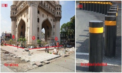 తాజాగా దాని చుట్టూ సుమారు రెండు అడుగులు పొడవుండే హైడ్రాలిక్ స్తంభాలను ఏర్పాటు చేస్తున్నారు. అవి దారిలో అడ్డంగా ఉన్నందున ఛార్మినార్ కట్టడానికి సమీపంలో వాహనాలు తిరగలేవు. అయితే అత్యవసర పరిస్థితులలో అంబులెన్స్, పోలీస్ వాహనాలు ప్రయాణించేందుకు వీలుగా అవి భూమిలోకి వెళ్ళిపోగలవు.