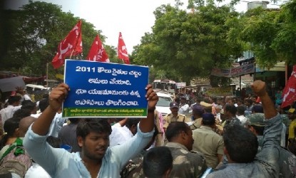 జోగులాంబ గద్వాల్ జిల్లాలో ఆలంపూర్ తహసిల్దార్ కార్యాలయం ముందు సుమారు 100 మంది కౌలురైతులు గురువారం ఉదయం ధర్నా నిర్వహించారు. ఈ సందర్భంగా తెలంగాణా రైతుసంఘం రాష్ట్ర ప్రధాన కార్యదర్శి టి.సాగర్ మాట్లాడుతూ, “పంట పెట్టుబడి, జీవిత భీమా పధకాలను కౌలురైతులకు ఇవ్వకుండా భూస్వాములకు ఇవ్వడం చాలా హాస్యాస్పదంగా ఉంది. ఒకవేళ కౌలురైతులు పట్ల ప్రభుత్వం ఇదేవిధంగా వివక్ష చూపుతున్నట్లయితే త్వరలోనే మహారాష్ట్రలో రైతుల మాదిరిగా తెలంగాణాలో నలుమూలల నుంచి హైదరాబాద్ కు కౌలురైతులతో లాంగ్ మార్చ్ నిర్వహించి నిరసన తెలుపుతాము. ముందుగా ఈ నెల 25,26,27 తేదీలలో జిల్లా కలెక్టర్ కార్యాలయాలను ముట్టడించి నిరసనలు తెలుపుతాము. అప్పటికీ ప్రభుత్వం కౌలురైతులు సమస్యలను పరిష్కరించకపోతే హైదరాబాద్ కు లాంగ్ మార్చ్ నిర్వహిస్తాము,” అని హెచ్చరించారు.
