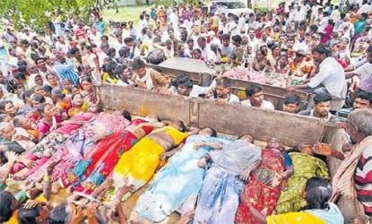 మృతులలో శకుంతల(35) తప్ప మిగిలిన 13మంది వేములకొండ గ్రామానికి చెందినవారే కావడంతో ఆ గ్రామంలో ఏ ఇంట చూసినా రోదనలే వినిపిస్తున్నాయి. మృతుల వివరాలు: అరూర్ మణెమ్మ(36), సుంచు నర్మద(25) కాడిగల్ల లక్ష్మమ్మ(38) కాడిగల్ల మానస (15) (లక్ష్మమ్మ కూతురు), ఇంజమూరి శంకరమ్మ(55), ఇంజమూరి నర్సమ్మ(35), బీసు కవిత(32), గన్నెబోయిన అండాలు(35), పంజాల భాగ్యమ్మ(35), అంబాల రాములమ్మ(55), బందారపు స్వరూప(30), ఏనుగుల మాధవి(40) జడిగె మారమ్మ(55), మల్లికార్జున్(3).