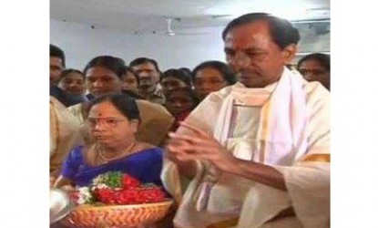 2016, మే 2వ తేదీన జిల్లాలో మేడిగడ్డ ప్రాజెక్టుకు శంఖుస్థాపన చేయడానికి వచ్చినప్పుడు ముఖ్యమంత్రి కేసీఆర్‌ దంపతులు ఆలయంలో స్వామివారిని అమ్మవారిని దర్శించుకొన్నారు. ఆ సందర్భంగా అమ్మవారికి బంగారు కిరీటం, పట్టుచీరను సమర్పించుకొన్నారు. ఆ తరువాత శృoగేరీ పీఠాధిపతి ప్రత్యేక పూజలు నిర్వహించి పట్టువస్త్రాలు సమర్పించారు. అవి ముఖ్యమంత్రి, శృoగేరీ పీఠాధిపతి సమర్పించిన చీరలని గుర్తించని ఆలయ ఉద్యోగి వాటిని దొంగతనం చేశాడు. కేసీఆర్ దంపతులు సమర్పించిన బంగారు కిరీటం అతని చేతికి చిక్కలేదు లేకుంటే అదీ మాయం చేసి ఉండేవాడే.