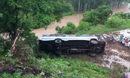 వంతెనపై నుంచి పడిన ఆర్టీసి బస్సు