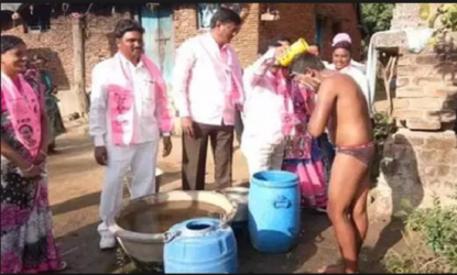 ఎన్నికలు రాగానే రాజకీయ నేతలు, ముఖ్యంగా ఎన్నికలలో పోటీ చేస్తున్న అభ్యర్ధులు ప్రజలను ఆకట్టుకోవడానికి చిత్రవిచిత్రమైన పనులు చేస్తుంటారు. ఎన్నికల ప్రచారంలో దూసుకుపోతున్న తెరాస అభ్యర్ధులు కూడా ప్రస్తుతం అదే చేస్తున్నారు. మేడ్చల్ జిల్లా కుత్బుల్లాపూర్ తెరాస అభ్యర్థి వివేకానంద ఎన్నికల ప్రచారానికి బయలుదేరినప్పుడు, దారిలో ఒక మహిళ తన చిన్నపిల్లాడికి స్నానం చేయిస్తుండగా, వివేకానంద హడావుడిగా ఆమె చేతిలో ఆ పిల్లాడిని తీసుకొని తనే స్నానం చేయించడంతో అందరూ మూసిముసినవ్వులు నవ్వుకొన్నారు.