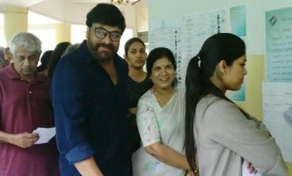 ప్రముఖ సినీ నటుడు, కాంగ్రెస్‌ నేత చిరంజీవి సతీసమేతంగా వచ్చి జూబ్లీహిల్స్ లో తన ఓటు హక్కును వినియోగించుకొన్నారు. గత ఎన్నికలలో చిరంజీవి క్యూ లైన్లో నిలబడకుండా నేరుగా పోలింగ్ బూతులోకి వెళ్ళి ఓటేసేందుకు ప్రయత్నించినప్పుడు ఒక యువ ఓటరు అభ్యంతరం చెప్పడంతో సర్ద్ధిచెప్పుకొని వెనక్కు వెళ్ళి క్యూలైన్లో నిలబడి ఓటేయవలసి వచ్చింది. ఆ చెడు అనుభవం కారణంగా ఈసారి చిరంజీవి మిగిలిన ఓటర్లతో పాటు క్యూలైన్లో నిలబడి ఓటు వేసి వచ్చారు. అయితే ఆయన కుమారుడు రామ్ చరణ్ తేజ్ మాత్రం ఈసారి ఓటు వేయలేకపోయారు. ఆయన సినిమా షూటింగ్ కోసం విదేశాలకు వెళ్ళి ఉన్నందున రాలేకపోతున్నారని చిరంజీవి చెప్పారు.