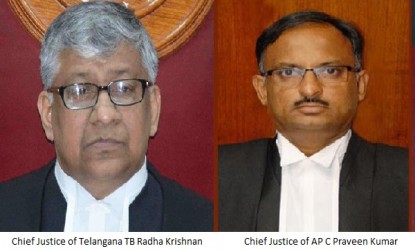 ప్రస్తుతం ఏపీ, తెలంగాణ రాష్ట్రాల ఉమ్మడి హైకోర్టుకు ప్రధాన న్యాయమూర్తిగా వ్యవహరిస్తున్న టిబి రాధాకృష్ణన్   తెలంగాణ హైకోర్టు ప్రధాన న్యాయమూర్తిగా కొనసాగుతారని కేంద్ర న్యాయమంత్రిత్వ శాఖ ఈరోజు సాయంత్రం విడుదల చేసిన ఒక గెజిట్ నోటిఫికేషన్ ద్వారా తెలియజేసింది. జస్టిస్‌ వి.రామసుబ్రమణియన్‌ మరియు జస్టిస్‌ రాఘవేంద్ర సింగ్‌ చౌహాన్ ఇదరూ తెలంగాణ హైకోర్టులో న్యాయమూర్తులుగా కొనసాగుతారని తెలియజేసింది.
