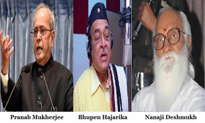 మాజీ రాష్ట్రపతి ప్రణబ్ ముఖర్జీ, జనసంఘ్ నాయకుడు నానాజీ దేశ్ముఖ్, అస్సామీ వాగ్గేయకారుడు భూపేన్ హజారికాలకు శుక్రవారం కేంద్రప్రభుత్వం భారతరత్న అవార్డులు ప్రకటించింది.