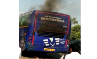 హైదరాబాద్‌ నుంచి విజయవాడ వెలుతున్న తెలంగాణ ఆర్టీసీ బస్సులో ఈరోజు తెల్లవారుజామున మంటలు చెలరేగాయి. ఇబ్రహీంపట్నం చేరుకొనేసరికి బస్సు వెనుకభాగం నుంచి పొగలు రావడం మొదలయ్యాయి. అది గమనించిన బస్సు డ్రైవరు వెంటనే బస్సును నిలిపివేసి ప్రయాణికులను హెచ్చరించడంతో అందరూ బస్సులో నుంచి దిగిపోయారు. బస్సు డ్రైవరు సకాలంలో గుర్తించి బస్సును నిలిపివేయడంతో మంటలు చెలరేగకుండా నివారించగలిగారు. సమాచారం అందుకొన్న టిఎస్ ఆర్టీసీ అధికారులు తక్షణమే విజయవాడ డిపో నుంచి మరో బస్సును ఏర్పాటు చేసి ప్రయాణికులను వారి గమ్యస్థానాలకు చేర్చారు. బస్సులో తలెత్తిన సాంకేతిక లోపాన్ని సవరించి అవసరమైన మరమత్తులు చేయించడానికి విజయవాడ డిపోకు తరలించారు.