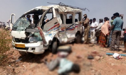 ఈరోజు మధ్యాహ్నం నల్గొండ జిల్లాలో ఘోరరోడ్డు ప్రమాదం జరిగింది. దానిలో 8మంది ఘటనా స్థలంలోనే మృతి చెందారు. దేవరకొండ నుంచి హైదరాబాద్ వైపు వెళుతున్న టాటా ఏస్ వాహనం కొండమల్లేపల్లి మండలం దేవతుపల్లి వద్ద అదుపుతప్పి ఎదురుగా వస్తున్న ఆర్టీసీ బస్సును బలంగా డీకొనడంతో టాటా ఏస్ వాహనం ముందు భాగం నుజ్జు నుజ్జు అయ్యింది. ఆ ధాటికి డ్రైవరుతో సహా వాహనంలో ప్రయాణిస్తున్న ఏడుగురు ప్రయాణికులు ఘటనాస్థలంలోనే మృతి చెందారు. మరొకరిని ఆసుపత్రికి తరలిస్తుండగా దారిలోనే చనిపోయారు. మరో నలుగురు ప్రయాణికులు తీవ్రంగా గాయపడినట్లు సమాచారం. పోలీసులు వారిని దేవరకొండ ప్రభుత్వాసుపత్రికి తరలించారు. పోలీసులు కేసు నమోదు చేసుకొని శవాలను పోస్ట్ మార్టం నిమిత్తం ఆసుపత్రికి తరలించారు. మృతుల పేర్లు: మహేశ్ (డ్రైవర్), గోవర్ధన్, ఆకుల శ్రీను, నీలా వెంకటేశ్వరులు, మరొక వ్యక్తి, ముగ్గురు మహిళలు ఉన్నారు. టాటా ఏస్ వాహనం టైరు పేలిపోవడం వలన ఈ ప్రమాదం జరిగినట్లు సమాచారం.