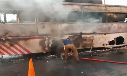 మహారాష్ట్రలో టిఎస్ఆర్టీసీ బస్సు మంటలలో దగ్దమైంది. శుక్రవారం ఉదయం మహారాష్ట్రలోని పండరీపూర్ నుంచి హైదరాబాద్ తిరిగి వస్తుండగా షోలాపూర్ వద్ద ఈ అగ్నిప్రమాదం జరిగింది. ఈ ప్రమాదంలో 10 మందికి తీవ్ర గాయాలయినట్లు తెలుస్తోంది. ప్రాణనష్టం జరిగిందా లేదా అనే విషయం ఇంకా తెలియవలసి ఉంది. బ్యాటరీలను తీసుకువెళుతున్న లారీని ఆర్టీసీ బస్సు వెనుక నుంచి డ్డీకొనడంతో ఒక్కసారిగా మంటలు చెలరేగినట్లు తెలుస్తోంది. స్థానికుల సహాయంతో పోలీసులు క్షతగాత్రులను షోలాపూర్ ప్రభుత్వాసుపత్రికి తరలించారు. ఈ ప్రమాదానికి సంబందించి పూర్తి వివరాలు ఇంకా తెలియవలసి ఉంది.