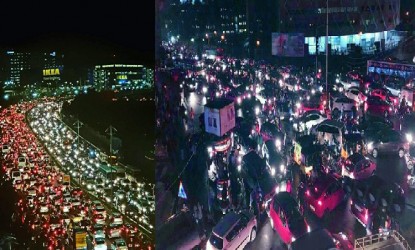 విశేషమేమిటంటే ప్రముఖ సినీ నటుడు నితిన్ కూడా ఈ ట్రాఫిక్ జామ్లో చిక్కుకొన్నారు. దాంతో ఆయన కూడా సమీపంలో మెట్రో స్టేషన్ చేరుకొని కిటకిటలాడుతున్న మెట్రోరైల్లో ప్రయాణించి తన గమ్యం చేరుకున్నారు. తమ అభిమాన హీరో తమతో పాటు మెట్రో రైల్లో ప్రయాణిస్తుండటంతో ఆయనతో సెల్ఫీలు తీసుకునేందుకు జనాలు ఎగబడటంతో రైల్లో కాసేపు ఇబ్బందికర పరిస్థితి ఏర్పడింది. ఎట్టకేలకు రాత్రి 10 గంటలకు ట్రాఫిక్ జామ్ క్లియర్ అయ్యింది.