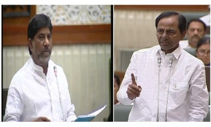 ఈరోజు శాసనసభలో బడ్జెట్పై సాధారణ చర్చ సందర్భంగా బడ్జెట్ ప్రతిపాదనలు, అప్పుల అంశాలపై సిఎం కేసీఆర్, సీఎల్పీ నేత మల్లు భట్టి విక్రమార్కలకు మద్య తీవ్ర స్థాయిలో వాగ్వాదాలు జరిగాయి. తొలుత సిఎం కేసీఆర్ మాట్లాడుతూ, “గత 5 ఏళ్ళలో రాష్ట్రంలో అన్ని రంగాలలో అభివృద్ధి సాధించి దేశానికే ఆదర్శంగా నిలించింది. కానీ ఈసారి తెలంగాణతో సహా దేశమంతటా ఆర్ధిక మాంద్యం ప్రభావం కనిపిస్తోంది. కానీ రాష్ట్రంలో జరుగుతున్న అభివృద్ధి, సంక్షేమ కార్యక్రమాలకు ఎటువంటి ఆటంకం లేకుండా చాలా వాస్తవిక దృక్పదంతో ఆలోచించి రాష్ట్ర బడ్జెట్ను రూపొందించాము. కనుక ఇక ముందు కూడా అభివృద్ధిపదంలో సాగిపోతుంది... అంటూ బడ్జెట్ గురించి క్లుప్తంగా వివరించారు.
