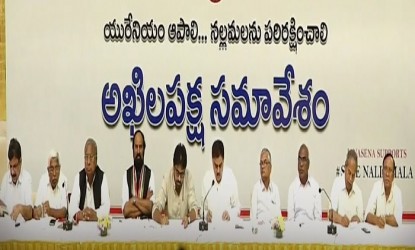 నల్లమల అడవులలో యురేనియం తవ్వకాలను వ్యతిరేకిస్తూ జనసేన అధినేత పవన్ కల్యాణ్ అధ్వర్యంలో సోమవారం హైదరాబాద్లో అఖిలపక్ష సమావేశం జరిగింది. దానిలో రాష్ట్ర కాంగ్రెస్ అధ్యక్షుడు ఉత్తమ్ కుమార్ రెడ్డి, సీనియర్ నేత వి.హనుమంతరావు, ఎంపీ రేవంత్ రెడ్డి, టిజేఎస్ అధ్యక్షుడు కోదండరాం ఇంకా పలువురు ప్రముఖులు, మేధావులు పాల్గొన్నారు. అందరూ ముక్తకంఠంతో యురేనియం త్రవ్వకాలను వ్యతిరేకించారు. తెలంగాణ ప్రభుత్వం యురేనియం త్రవ్వకాలకు ఇచ్చిన అన్ని అనుమతులను రద్దు చేయాలని డిమాండ్ చేశారు. నల్లమల అడవులలో యురేనియం తవ్వకాలను పూర్తిగా నిషేదించాలని వారు డిమాండ్ చేశారు.