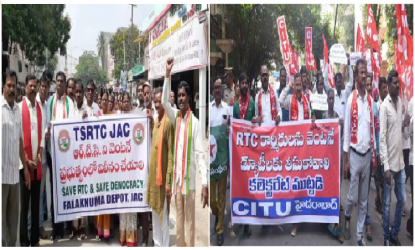 ఆర్టీసీ సమ్మె మొదలైనప్పుడు ఆర్టీసీని ప్రభుత్వంలో విలీనం చేయాలనే డిమాండ్ వ్రాసున్న బ్యానర్లు, ప్లకార్డులు పట్టుకొని ఆర్టీసీ కార్మికులు రోడ్లపై ఆందోళన కార్యక్రమాలు నిర్వహించేవారు. సమ్మె విరమించినప్పటికీ ప్రభుత్వం ఆర్టీసీ కార్మికులను విధులలోకి తీసుకోవడానికి నిరాకరిస్తుండటంతో ఇప్పుడు ‘ఆర్టీసీ కార్మికులను వెంటనే విధులలోకి తీసుకోవాలి,’ అని వ్రాసున్న బ్యానర్లు, ప్లకార్డులతో ఆందోళన కార్యక్రమాలలో పాల్గొంటున్నారు. చేతిలో డబ్బు లేకపోయినా ఆర్టీసీ కార్మికులు 52 రోజులపాటు ఏకధాటిగా సమ్మె చేశారు. కానీ ఇక ఎంతమాత్రం సమ్మెను కొనసాగించే పరిస్థితిలో లేరు. తమ పరిస్థితులను దృష్టిలో ఉంచుకొని తమను తక్షణం విధులలోకి తీసుకోవాలని ఆర్టీసీ కార్మికులు కన్నీళ్ళతో డిపో మేనేజర్లను వేడుకొంటున్నారు. కానీ ప్రభుత్వం అనుమతి లేకుండా చేర్చుకోలేమని చెపుతున్నారు. చాలా చోట్ల ఆర్టీసీ కార్మికులు డిపోల సమీపానికి చేరనీయకుండా పోలీసులు అడ్డుకొని పోలీస్స్టేషన్లకు తరలిస్తున్నారు. ఖమ్మంలో ముందస్తు జాగ్రత్త చర్యగా పోలీసులు ఆర్టీసీ కార్మికుల ఇళ్ళలో ప్రవేశించి అదుపులో తీసుకొని పోలీస్స్టేషన్లకు తరలించారు. ఇంట్లో వంట చేసుకొంటున్న తనను ఎందుకు అరెస్ట్ చేస్తున్నారని మహిళా కండక్టర్ ప్రశ్నకు పోలీసులు సమాధానం చెప్పలేదు. ఇంట్లోకి పోలీసులు జొరబడి తల్లిని పట్టుకుపోతుంటే ఆమె పిల్లలు భయంతో ఏడుస్తుంటే అది చూసి ఇరుగుపొరుగులు చలించిపోయారు.