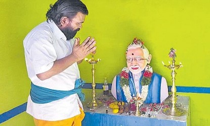 తమిళనాడులోని తిరుచురాపల్లిలోని ఏరకుడి గ్రామానికి చెందిన పి.శంకర్ అనే ఒక రైతు కూడా కేంద్రప్రభుత్వం ప్రవేశపెట్టిన సంక్షేమ పధకాలతో లబ్ది పొందాడు. దాంతో అతను తన పొలంలో ప్రధాని నరేంద్రమోడీకి గుడి కట్టించి ప్రతీరోజూ ఆయన విగ్రహానికి పూజలు చేస్తున్నాడు. దేశాన్ని అభివృద్ధి పధంలో నడిపిస్తూ ప్రపంచదేశాలలో భారత్ కీర్తిప్రతిష్టాలను మారుమ్రోగేలా చేస్తున్న ప్రధాని నరేంద్రమోడీ అంటే తనకు చాలా అభిమానమని తన జీవితంలో వెలుగులు నింపిన ప్రధాని నరేంద్రమోడీ తనకు దేవుడితో సమానమని అని చెపుతున్నాడు. అందుకే తన పొలంలోనే రూ.1.20 లక్షలు ఖర్చు పెట్టి ప్రధాని నరేంద్రమోడీకి గుడి కట్టించి రోజూ పూజలు చేస్తున్నానని శంకర్ చెప్పాడు.