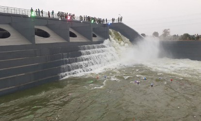 సిఎం కేసీఆర్ కొద్ది సేపటి క్రితం మర్కూక్ పంప్హౌస్లో మోటార్ను ఆన్చేసి కొండపోచమ్మ రిజర్వాయరులోకి నీటిని విడుదల చేశారు. త్రిదండి చినజీయర్ స్వామి సమక్షంలో జరిగిన ఈ కార్యక్రమంలో ఆర్ధిక మంత్రి హరీష్రావుతో సహా పలువురు మంత్రులు, స్థానిక ఎమ్మెల్యేలు, ఎంపీలు, కాళేశ్వరం ప్రాజెక్టు ఉన్నతాధికారులు పాల్గొన్నారు. మోటార్ను ఆన్ చేసిన తరువాత సిఎం కేసీఆర్ దంపతులు, చినజీయర్ స్వామి తదితరులు నీళ్ళు విడుదలయ్యే (డెలివరీ పాయింట్) చోటికి వెళ్ళి పూలతో గోదారమ్మకు ప్రత్యేకపూజలు చేశారు. అంతకు ముందు సిఎం కేసీఆర్ దంపతులు కొండపోచమ్మ ఆలయంలో జరిగిన చండీయాగంలో పూర్ణాహుతి కార్యక్రమంలో పాల్గొన్నారు. అనంతరం మర్కూక్ పంప్హౌస్లో త్రిదండి చినజీయర్ స్వామి సమక్షంలో జరిగిన సుదర్శనయాగం పూర్ణాహుతి కార్యక్రమంలో పాల్గొన్నారు.