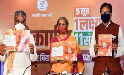 త్వరలో జరుగబోయే బిహార్ శాసనసభ ఎన్నికలకు కేంద్ర ఆర్ధికమంత్రి గురువారం ఢిల్లీలో బిజెపి ఎన్నికల మ్యానిఫెస్టోను విడుదల చేశారు. దానిలో కరోనా వ్యాక్సిన్ పంపిణీని కూడా చేర్చారు. రాష్ట్రంలో తమ ఎన్డీయే కూటమి మళ్ళీ అధికారంలోకి వస్తే ఐసీఎంఆర్ ఆమోదం లభించగానే రాష్ట్ర ప్రజలందరికీ ఉచితంగా కరోనా వ్యాక్సిన్ ఇప్పిస్తామని మ్యానిఫెస్టోలో హామీ ఇచ్చింది.