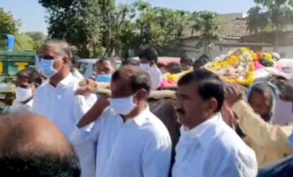 ఈ సమాచారం అందుకొన్న మంత్రి హరీష్రావు హుటాహుటిన నిన్న ఉదయం స్వామి ఇంటికి చేరుకొని అతని కుటుంబ సభ్యులను ఓదార్చారు. స్వామికి నివాళులు అర్పించి అతని అంత్యక్రియలలో స్వయంగా పాడె మోశారు. అనంతరం పార్టీ కార్యకర్తలను ఉద్దేశ్యించి మాట్లాడుతూ, “టిఆర్ఎస్ కోసం స్వామి చాలా కష్టపడి పనిచేశాడు. అతను ఆత్మహత్య చేసుకొన్నాడని విని నేను చాలా బాధపడ్డాను. ఎన్నికలలో పార్టీలకు గెలుపోటములు చాలా సహజం. కనుక ఓడినప్పుడు ధైర్యంతో ముందుకు సాగాలే తప్ప క్షణికావేశంతో ఇటువంటి పనులు చేయకూడదు. అలా చేస్తే కుటుంబసభ్యులకు అన్యాయం చేసినవారం అవుతాము,” అని అన్నారు.