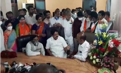 రాష్ట్ర కాంగ్రెస్ పార్టీని ఇప్పటివరకు టిఆర్ఎస్ బలహీనపరచగా ఇప్పుడు బిజెపి దాని వెంటపడుతోంది. ఇవాళ్ళ రాష్ట్ర బిజెపి అధ్యక్షుడు బండి సంజయ్ బిజెపి, మాజీ ఎంపీ వివేక్తో కలిసి హైదరాబాద్లోని మహేంద్ర హిల్స్ లోని మాజీ కేంద్రమంత్రి సర్వే సత్యనారాయణ ఇంటికి వెళ్ళి ఆయనతో భేటీ అయ్యారు. వారు సర్వేను బిజెపిలో చేరవలసిందిగా కోరగా ఆయన సానుకూలంగా స్పందించారు. త్వరలోనే బిజెపిలో చేరుతానని, తనతో పాటు పలువురిని బిజెపిలోకి తీసుకువస్తానని చెప్పారు.