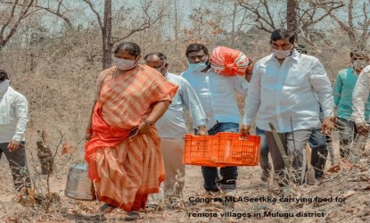 ఈ కరోనా..లాక్డౌన్ కష్టకాలంలో అడిగినా పట్టెడు అన్నం పెట్టేవారు లేరు. కానీ కాంగ్రెస్ ఎమ్మెల్యే సీతక్క ములుగు జిల్లాలో గ్రామాలలో పర్యటిస్తూ అక్కడి నిరుపేద గిరిజన ప్రజలకు ఆహారం పోట్లాలు పంచిపెట్టారు...అనేకమందికి నిత్యావసర సరుకులు ప్యాకెట్లు అందజేశారు. ములుగు మండలం కాసిందేవిపేటలో పర్యటించి అక్కడి గ్రామస్తులకు ఆక్సీమీటరుతో ఆక్సిజన్ లెవెల్స్ పరీక్షించి తక్కువ ఉన్నవారిని వెంటనే ఆసుపత్రికి తరలించారు. సీతక్క గ్రామాలలో పర్యటిస్తూ కరోనా వైరస్ లక్షణాలు, ఆ వ్యాధి సోకకుండా తీసుకోవలసిన జాగ్రత్తలు, ఆ వ్యాధి సోకితే ఎవరిని సంప్రదించాలి...వంటి అనేక విషయాల గురించి గ్రామీణులకు అర్ధమయ్యేలా వివరించి చెప్పారు.
