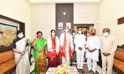 మంత్రి తలసాని శ్రీనివాస్ యాదవ్, డిజిపి మహేందర్ రెడ్డి, పోలీస్ ఉన్నతాధికారులు తదితరులు నిన్న ఆదివారం హైదరాబాద్‌ ఎస్‌ర్‌ నగర్‌లోని  జస్టిస్ ఎన్.వి.రమణ నివాసానికి వెళ్ళి ఆయనకు శాలువా కప్పి సత్కరించారు.