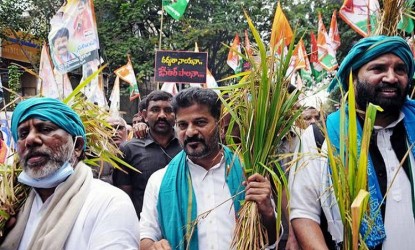 ధాన్యం కొనుగోలుపై రాష్ట్రంలో మూడు ప్రధాన పార్టీలు ధర్నాలు, ర్యాలీలతో రాష్ట్రాన్ని హోరెత్తించేస్తున్నాయి. కాంగ్రెస్ పార్టీ కూడా గురువారం పబ్లిక్ గార్డెన్స్ నుంచి బషీర్బాగ్లోని వ్యవసాయ కమీషనరేట్ వరకు ర్యాలీ నిర్వహించింది. ఈ సందర్భంగా పిసిసి అధ్యక్షుడు రేవంత్ రెడ్డి మీడియాతో మాట్లాడుతూ, “టిఆర్ఎస్, బిజెపిలు రెండూ పరస్పరం కత్తులు దూసుకొంటున్నట్లు డ్రామాలు ఆడుతున్నప్పటికీ ఆ రెండూ కలిసి రాష్ట్రంలో రైతులను మభ్యపెట్టేందుకు జాయింట్ యాక్షన్ కమిటీ (జేఏసీ)గా పనిచేస్తున్నాయి. కేంద్రం సూచనల ప్రకారమే కేసీఆర్ ధర్నా చేశారు. కేసీఆర్కు రైతుల సమస్యలను పరిష్కరించాలనే చిత్తశుద్ది ఉంటే ఢిల్లీలో ధర్నాలు చేయాలి. ఇక్కడ కాదు. అక్కడ రైతులు ధాన్యం రోడ్లపై పోసుకొని ఎదురుచూస్తుంటే వారి వద్ద నుంచి ధాన్యం కొనకుండా సిఎం కేసీఆర్ ధర్నాలు చేయడం హాస్యాస్పదంగా ఉంది. సహారా కుంభకోణంలో సిఎం కేసీఆర్ను జైలుకి వెళ్ళకుండా ప్రధాని నరేంద్రమోడీ, కేంద్రహోంమంత్రి అమిత్ షాలే కాపాడుతున్నారు. బండి సంజయ్ రాష్ట్రంలో తిరిగితే ఏం ప్రయోజనం? ఢిల్లీకి వెళ్ళి తమ పార్టీ అధిష్టానాన్ని, కేంద్రప్రభుత్వాన్ని ధాన్యం కొనుగోలుకి ఒప్పించాలి. లేకుంటే అక్కడే జంతర్ మంతర్ వద్ద ధర్నా చేయాలి,” అని అన్నారు.