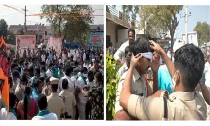 ఈ విషయం తెలుసుకొన్న టిఆర్ఎస్ కార్యకర్తలు అక్కడకు చేరుకొని ఈ కార్యక్రమానికి తమ ఎమ్మెల్యే బాజిరెడ్డిని, స్థానిక ప్రజా ప్రతినిధులను ఎందుకు ఆహ్వానించలేదని బిజెపి కార్యకర్తలను నిలదీశారు. దీంతో ఇరువర్గాల మద్య వాదోపవాదాలు మొదలై చివరికి పరస్పరం రాళ్ళు రువ్వుకొన్నారు. పోలీసులు ఇరువర్గాలను చెదరగొట్టేందుకు ప్రయత్నిస్తున్నప్పుడు వారి రాళ్ళ దాడిలో ఎస్సై వంశీ కృష్ణ, ఓ మహిళా కానిస్టేబుల్ గాయపడ్డారు. అయినప్పటికీ పోలీసులు సంయమనం పాటిస్తూ ఇరువర్గాలను శాంతింపజెసేందుకు విశ్వప్రయత్నం చేశారు. కానీ టిఆర్ఎస్, బిజెపి కార్యకర్తలు ఏమాత్రం వెనక్కు తగ్గకుండా విగ్రహానికి చెరోవైపు బైటాయించి ఎదుటపార్టీ డౌన్ డౌన్ అంటూ నినాదాలు చేస్తున్నారు. దీంతో దర్పల్లిలో ఉద్రిక్త వాతావరణం నెలకొని ఉంది. పోలీసులు ఇరువర్గాలకు నచ్చజెప్పి అక్కడి నుంచి పంపించివేసేందుకు ప్రయత్నిస్తున్నారు.