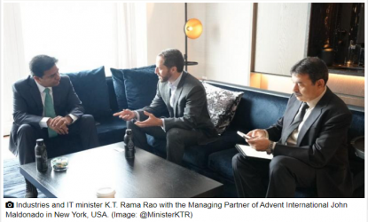 రాష్ట్రానికి పరిశ్రమలు, పెట్టుబడులను రప్పించేందుకు ఈ నెల 18న అమెరికా వెళ్ళిన ఐటి, పరిశ్రమల శాఖల మంత్రి కేటీఆర్ హైదరాబాద్ చేరుకొన్నారు. కేటీఆర్ 12 రోజుల అమెరికా పర్యటనలో వివిద రాష్ట్రాలలో పర్యటించి అనేక కంపెనీల ప్రతినిధులు, సీఈవోలతో సమావేశమయ్యి హైదరాబాద్లో పరిశ్రమలు స్థాపించేందుకు ఒప్పించారు. న్యూయార్క్లోని అడ్వెంట్ ఇంటర్నేషనల్ కంపెనీ రూ.1,750 కోట్లు, ఫార్మా కోపియా రూ.1,525 కోట్లు, న్యూజెర్సీలోని స్లేబ్యాక్ ఫార్మా రూ.150 కోట్లు పెట్టుబడితో హైదరాబాద్లో పరిశ్రమలు ఏర్పాటుచేసేందుకు అంగీకరించాయి. మంత్రి కేటీఆర్ 12 రోజుల పర్యటనలో రాష్ట్రానికి దాదాపు రూ.8,000 కోట్లు పెట్టుబడులు ఆకర్షించగలిగారు. ఇవి ఆయన ప్రతిభకు, తెలంగాణ ప్రభుత్వం పనితీరుకి నిదర్శనంగా చెప్పుకోవచ్చు.