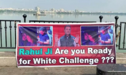 ఇప్పుడు టిఆర్ఎస్‌ నేతలు దానినే కాంగ్రెస్‌ అధినాయకుడు రాహుల్ గాంధీకి రిటర్న్ గిఫ్ట్ గా ఇస్తున్నారు. నేడు ఆయన రాష్ట్ర పర్యటనకు వస్తుండటంతో హైదరాబాద్‌ ట్యాంక్‌ బండ్‌తో సహా కొన్ని ప్రాంతాలలో పోస్టర్స్ ఏర్పాటు చేశారు. దానిలో రాహుల్ గాంధీ నేపాల్ నైట్ క్లబ్బులో ఓ చైనా యువతితో కలిసి పార్టీ చేసుకొంటున్న ఫోటోలు పెట్టి, రాహుల్ గాంధీ వైట్‌-ఛాలెంజ్‌కి సిద్దమేనా? అంటూ కింద వ్రాశారు.