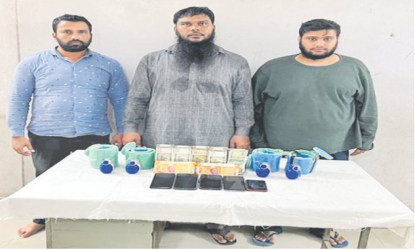 దసరా పండుగ సందర్భంగా హైదరాబాద్లో బాంబు దాడులతో విధ్వంసం సృష్టించేందుకు కుట్రపన్నుతున్న ముగ్గురిని టాస్క్ ఫోర్స్ పోలీసులు ఆదివారం రాత్రి అరెస్ట్ చేశారు. ముసారాంబాగ్లో నివాసముంటున్న మహ్మద్ అబ్దుల్ జాహెద్, హుమాయూన్ నగర్, రాయల్ కాలనీలో నివాసముంటున్న మాజ్ హాసన్ ఫరూఖ్, సైదాబాద్లో ఉంటున్న అక్బర్ బేగ్లను టాస్క్ ఫోర్స్ పోలీసులు ఆదివారం రాత్రి అరెస్ట్ చేశారు. వారి వద్ద నుంచి 4 హ్యాండ్ గ్రెనేడ్లు, రూ.5.41 లక్షల నగదు, సెల్ ఫోన్లు, ఓ బైక్ స్వాధీనం చేసుకొన్నారు.