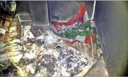 మునుగోడు ఉపఎన్నికలకు మూడు ప్రధాన పార్టీలు తమ అభ్యర్ధులను ప్రకటించినప్పటి నుంచి ఆ నియోజకవర్గంలో చాలా హైటెన్షన్ వాతావరణం నెలకొంది. మూడు పార్టీలు పరస్పరం తీవ్ర ఆరోపణలు చేసుకొంటున్నాయి. సరిగ్గా ఇటువంటి సమయంలో చండూరులో కాంగ్రెస్ పార్టీ ఏర్పాటుచేసుకొన్న కార్యాలయంలో అగ్ని ప్రమాదం జరిగింది. ఈ అగ్ని ప్రమాదంలో మునుగోడులో ప్రచారం కోసం ముద్రించిన కరపత్రాలు, పార్టీ బ్యానర్లు, జెండాలు అన్నీ కాలి బూడిదైపోయాయి. పార్టీ కార్యాలయంలో ఎవరూ లేని సమయంలో ఈ అగ్ని ప్రమాదం జరగడంతో ఇది టిఆర్ఎస్ లేదా బిజెపి పనే అయ్యుండవచ్చని పిసిసి అధ్యక్షుడు రేవంత్ రెడ్డి అనుమానం వ్యక్తం చేస్తున్నారు. కాంగ్రెస్ అభ్యర్దిగా పోటీ చేస్తున్న పాల్వాయి స్రవంతి కూడా ఆ రెండు పార్టీల మీదే అనుమానం వ్యక్తం చేశారు.
