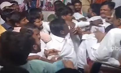 మనిషి రక్తాన్ని శుద్ధి చేసుకోవచ్చునేమో కానీ దాని గ్రూపు (లక్షణాలు) మార్చుకోలేనట్లే, తెలంగాణ కాంగ్రెస్ నేతలను మార్చుకోవచ్చేమో కానీ కీచులాడుకొనే దాని బేసిక్ లక్షణాలు మాత్రం వదిలించుకోలేదు. వరంగల్ కాంగ్రెస్ సమావేశంలో కూడా అదే జరిగింది. జిల్లా అధ్యక్షురాలిగా ఎర్రబెల్లి స్వర్ణ నేడు ప్రమాణస్వీకారం చేస్తుంటే కొండా సురేఖ వర్గానికి చెందిన సంతోష్ అనే కార్యకర్త లేచి ఈ కార్యక్రమానికి కొండా సురేఖ దంపతులను ఆహ్వానించాలని తెలియదా అంటూ నిలదీశారు. దాంతో ఎర్రబెల్లి స్వర్ణ అనుచరుడైన కట్టస్వామి అతనిపై దాడి చేశాడు. దాంతో ఇరువర్గాలు ఒకరినొకరు పట్టుకొని చొక్కాలు చిరిగిపోయేలా తన్నుకొన్నారు. మద్యలో ఎర్రబెల్లి స్వర్ణ భర్త కూడా బరిలో దిగి కొండా సురేక అనుచరులపై దాడి చేసి ఇక్కడ గొడవ చేస్తే తోలు తీస్తానంటూ వార్నింగ్ ఇచ్చారు. కాసేపు ఇరువర్గాలు తిట్టుకొని, కొట్టుకొన్న తర్వాత అందరూ శాంతించి ఎవరి దారినవారు వెళ్ళిపోయారు. జిల్లాలో కాంగ్రెస్ అధ్యక్షురాలి కళ్లెదుటే ఆమె వర్గం, కొండా సురేఖ వర్గం తన్నుకొంటే, ఇక అందరినీ ఒక్క తాటిపై ఎలా నడిపించగలరు? ఎన్నికలలో ఎలా గెలవగలరు?