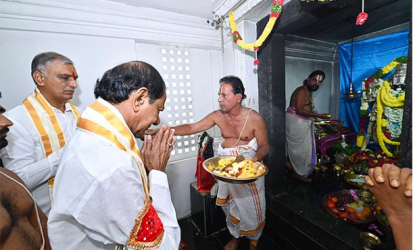 ఆయనతో పాటు మంత్రి హరీష్ రావు కూడా తన నామినేషన్ పత్రాలను స్వామివారి పాదాల వద్ద ఉంచి ప్రత్యేక పూజలు చేశారు.