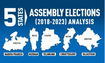 మధ్యప్రదేశ్, రాజస్థాన్, ఛత్తీస్ఘడ్, మిజోరాం శాసనసభ ఎన్నికల ఫలితాలపై వివిద మీడియా, సర్వే సంస్థలు తమ అంచనాలను ప్రకటించాయి. వాటి ప్రకారం బీజేపీ పాలిత మధ్యప్రదేశ్ రాష్ట్రంలో మళ్ళీ బీజేపీ అధికారంలోకి వచ్చే అవకాశం ఉండగా, కాంగ్రెస్ పాలిత ఛత్తీస్ఘడ్ రాష్ట్రంలో ఆ రెండు పార్టీలకు ఇంచుమించు సమానంగా సీట్లు రావచ్చని పేర్కొన్నాయి. కాంగ్రెస్ పాలిత రాజస్థాన్ కూడా ఈసారి కాంగ్రెస్ చేజారి బీజేపీకి దక్కే అవకాశం ఉందని పేర్కొన్నాయి. మిజోరాంలో కాంగ్రెస్తో కూడిన ఎంఎన్ఎఫ్ కూటమి గెలిచి అధికారంలోకి రావచ్చని పేర్కొన్నాయి.