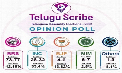 గురువారం పోలింగ్‌ పూర్తవగానే పలు సంస్థలు కాంగ్రెస్ పార్టీ విజయం సాధించబోతోందంటూ సర్వే నివేదికలు ప్రకటించాయి. తాజాగా వాట్సప్ గ్రూపులలో మంచి పేరున్న ‘తెలుగు స్క్రైబ్’ కూడా తెలంగాణ ఓటరు నాడీ తెలుసుకొనేందుకు ఆన్‌లైన్‌లో ఓ సర్వే (ఒపీనియన్ పోల్) నిర్వహించి ఆ నివేదికను ప్రకటించింది. ఈ ఎన్నికలలో బిఆర్ఎస్ పార్టీ 73-77 సీట్లు గెలుచుకోబోతున్నట్లు తెలియజేసింది. బిఆర్ఎస్ పార్టీకి 42.18% ఓటు షేర్ లభిస్తుందని తెలిపింది.