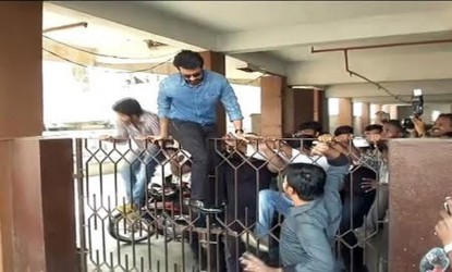 కోలీవుడ్ స్టార్ హీరో సూర్య గేటు దూకేశాడు. అదేంటి గేటు దూకి పారిపోవాల్సిన అవసరం ఆయనకేంటి అంటే.. రీసెంట్ గా సంక్రాంతి కానుకగా తెలుగు తమిళ భాషల్లో తన గ్యాంగ్ సినిమా రిలీజ్ అయిన సంగతి తెలిసిందే. ఈ సినిమా తెలుగులో యావరేజ్ టాక్ తెచ్చుకోగా ప్రమోషన్స్ మాత్రం బాగా చేస్తున్నారు.