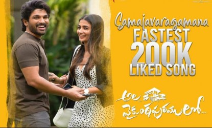 సిరివెన్నెల సీతారామ శాస్త్రి సాహిత్యం.. తమన్ సంగీతం.. సిద్ శ్రీరాం గానం.. సామజవరగమన సాంగ్ కు క్రేజ్ తీసుకొచ్చాయి. వ్యూస్ మాత్రమే కాదు ఈ సాంగ్ కు 2,50,000 లైకులు కూడా వచ్చాయి. కేవలం సాంగ్ కే అల వైకుంఠపురములోకి ఈ రేంజ్ రెస్పాన్స్ వస్తే ఇక సినిమా ఎలా ఉండబోతుందో చూడాలి. 2020 సంక్రాంతికి ఈ సినిమా వస్తుంది. పూజ హెగ్దె హీరోయిన్ గా నటిస్తున్న ఈ సినిమాలో నవదీప్, సుశాంత్, నివేదా పేతురాజ్ కూడా నటిస్తున్నారు.