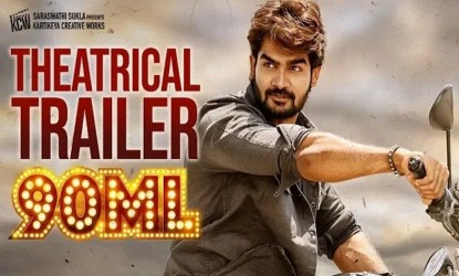యువ హీరో కార్తికేయ, నేహా సోలంకి జతగా శేఖర్ రెడ్డి డైరక్షన్ లో తెరకెక్కుతున్న సినిమా 90 ఎం.ఎల్. ఈ సినిమాకు సంబందించిన ట్రైలర్ ఈరోజు రిలీజ్ చేశారు. చిన్నప్పటి నుండి రోజు మందు తాగే అలవాటు కాదు కాదు అవసరం పడిన ఓ హీరో.. అసలు మందు వాసనే ఇంట్లో పడని అమ్మాయితో ప్రేమలో పడతాడు.. ఇక ఆ కుర్రాడు ప్రేమ కోసం ఎలాంటి తిప్పలు పడ్డాడు అన్నదే 90 ఎం.ఎల్ సినిమా కథ.