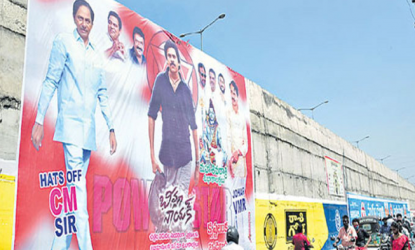 తెలంగాణ ప్రభుత్వం తెలుగు సినీ పరిశ్రమకు బాసటగా నిలిచి ప్రోత్సహిస్తునందుకు కృతజ్ఞతలు, అభినందనలు తెలుపుతూ “హ్యాట్స్ ఆఫ్ సిఎం కేసీఆర్ సర్...” అంటూ విజయవాడలో భారీ ఫ్లెక్సీని ఏర్పాటు చేశారు. దానిలో మంత్రులు కేటీఆర్, తలసాని శ్రీనివాస్ యాదవ్ ఫోటోలు ఓ పక్క, మద్యలో జనసేనాని, భీమ్లా నాయక్ హీరో పవన్ కల్యాణ్, మరోవైపు వంగవీటి రంగా, మాజీ ఎమ్మెల్యే వంగవీటి రాధాకృష్ణ, జనసేన నాయకుడు నాదెండ్ల మనోహర్ చిత్రాలు ముద్రించారు. నిన్న భీమ్లా నాయక్ సినిమా విడుదలను పురస్కరించుకొని కృష్ణలంకకు చెందిన అభిమానులు విజయవాడలో ఈ ఫ్లెక్సీ బ్యానర్ ఏర్పాటు చేశారు.