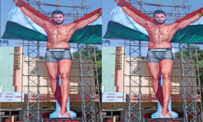 రౌడీ హీరో విజయ్ దేవరకొండ నటించిన లైగర్ ట్రైలర్ గురువారం విడుదలవుతుండటంతో అభిమానులు హైదరాబాద్‌లో ఆర్టీసీ క్రాస్ రోడ్స్ వద్ద గల సుదర్శన్ థియేటర్ వద్ద 75 అడుగుల ఎత్తున్న భారీ కటవుట్ ఏర్పాటు చేశారు. దానిలో కండలు తిరిగిన శరీరంతో జాతీయ జండా పట్టుకొని నిలబడినట్లు కటవుట్ రూపొందించారు. ఇటీవల కాలంలో రాజకీయ నాయకుల కటవుట్లే తప్ప సినిమా హీరోల కటవుట్లు కనబడటం లేదు. కనుక ఆర్టీసీ క్రాస్ రోడ్స్ వద్ద ఏర్పాటు చేసిన విజయ్ దేవరకొండ భారీ కటవుట్ అందరి దృష్టిని విశేషంగా ఆకర్షిస్తోంది.