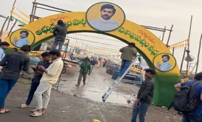 అవును మెగా పవర్ స్టార్ రామ్ చరణ్‌ రాజకీయాలో ప్రవేశిస్తున్నారు. ఎన్నికలలో పోటీ చేయబోతున్నారు. అయితే నిజ జీవితంలో కాదు... శంకర్ దర్శకత్వంలో తెరకెక్కుతున్న సినిమాలో! దానిలో రామ్ చరణ్‌ అభ్యుదయం పార్టీ అభ్యర్ధిగా ఎన్నికలలో పోటీ చేస్తున్నట్లు, దానికి సంబందించి విశాఖపట్నంలో జరుగబోతున్న సభకి హాజరవుతున్న ఆయనకి స్వాగతం చెపుతూ స్వాగత తోరణం ఏర్పాటు చేశారు. పసుపు రంగులో ఉన్న ఆ తోరణంలో కుడి, ఎడమ, పై భాగంలో రామ్ చరణ్‌ ఫోటోలు ఉన్నాయి. దాని వెనుక వరుసగా రంగురంగుల తోరణాలు కట్టారు. యూనిట్ సిబ్బంది స్వాగత తోరణాన్ని ఏర్పాటు చేస్తుండగా తీసిన ఫోటో సోషల్ మీడియాలోకి వచ్చేసింది.