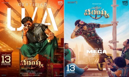 బాబి దర్శకత్వంలో మెగాస్టార్ చిరంజీవి, శ్రుతీ హాసన్ జంటగా వస్తున్న వాల్తేర్ వీరయ్య సినిమా సెన్సార్ రిపోర్ట్ వచ్చేసింది. ఈ సినిమాకి సెన్సార్ బోర్డ్ యు/ఏ సర్టిఫికేట్ జారీ చేసింది. దీనిలో పాటలకి చిరంజీవి చేసిన డ్యాన్సులు అద్భుతంగా ఉన్నాయని సెన్సార్ బోర్డ్ సభ్యులు మెచ్చుకొన్నారు. యూఎస్లో ఈ సినిమాని విడుదల చేస్తున్న శ్లోక ఎంటర్టైన్మెంట్ అప్పుడే అడ్వాన్స్ బుకింగ్స్ కూడా మొదలుపెట్టేసింది. జనవరి 12న ప్రీమియర్ షోలు వేయబోతున్నట్లు ఆ సంస్థ ప్రకటించింది. యూఎస్లో 67 థియేటర్లలో ఈ సినిమాని రిలీజ్ చేయబోతున్నట్లు ప్రకటించి ఆ జాబితాని కూడా విడుదల చేసింది.