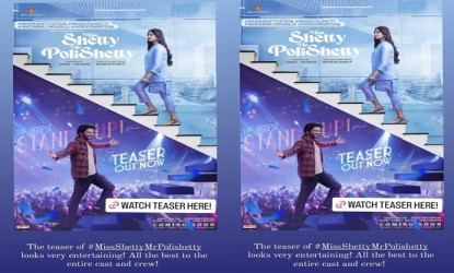 నవీన్ పోలిశెట్టి, అనుష్క ప్రధాన పాత్రలలో వస్తున్న మిస్ శెట్టి మిస్టర్ పోలిశెట్టి సినిమా టీజర్ విడుదలైంది. టైటిల్తోనే ఇదో స్టాండప్ కామెడీ సినిమా అని స్పష్టమైంది. టీజర్ అదే చెపుతోంది. మహేష్ బాపు దర్శకత్వంలో యూవీ క్రియెషన్స్ ఈ సినిమాను నిర్మిస్తోంది. ఈ సినిమాలో అనుష్క లండన్లో ఓ పెద్ద స్టార్ హోటల్లో చెఫ్గా నటిస్తుండగా, నవీన్ పోలిశెట్టి స్టాండప్ సిద్ధూ అనే కమెడియన్గా నటిస్తున్నాడు. నవీన్ పోలిశెట్టి అంటేనే కామెడీ మళ్ళీ సిట్యువేషన్కి సంబందం లేకుండా కామెడీ చేస్తానంటూ స్టాండప్ కామెడీ చేస్తే ఈ సినిమాలో కామెడీ ఏ రేంజ్లో ఉంటుందో?