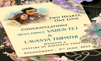 నాగబాబు కుమారుడు, మెగా ప్రిన్స్ వరుణ్ తేజ్, ప్రముఖ నటి లావణ్య త్రిపాఠిల వివాహ నిశ్చితార్ధం శుక్రవారం సాయంత్రం హైదరాబాద్‌లో నాగబాబు ఇంట్లో ఇరుకుటుంబాలు, వారి అత్యంత సన్నిహిత బంధుమిత్రుల సమక్షంలో జరిగింది.