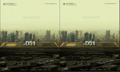 ధనుష్కి ఇది 51వ సినిమా కనుక డి51 వర్కింగ్ టైటిల్తోనే సినిమా షూటింగ్ చేస్తున్నారు. కొన్నిరోజుల క్రితమే ఈ డి51 సినిమాని ప్రకటిస్తూ చాలా ఆసక్తికరమైన పోస్టర్ విడుదల చేశారు. దానిలో ఓ వైపు భారీ భవనాలు, మరోవైపు పేదవారి గుడిసెలు రెంటికీ మద్యలో అడ్డుగోడలా పెద్ద డబ్బుకట్టని చూపించి సినిమాపై ఆసక్తి పెరిగేలా చేశారు. శ్రీ వెంకటేశ్వర సినిమాస్ ఎల్ఎల్పి బ్యానర్పై ఏషియన్ సునీల్ ఈ సినిమాని నిర్మిస్తున్నారు.