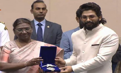 ఈరోజు రాష్ట్రపతి భవన్లో జరిగిన జాతీయ అవార్డుల ప్రధానోత్సవంలో అల్లు అర్జున్ రాష్ట్రపతి ద్రౌపది ముర్ము చేతుల మీదుగా ఉత్తమ నటుడుగా జాతీయ అవార్డు అందుకొన్నారు. సుకుమార్ దర్శకత్వంలో వచ్చిన పుష్ప-ది రైజ్ సినిమాలో అల్లు అర్జున్ నటనకు ఈ అవార్డు లభించింది. అల్లు అర్జున్ అర్జున్కి ఇది తొలి జాతీయ అవార్డు. ఈ కార్యక్రమంలో అల్లు అర్జున్ క్రీమ్ కలర్ సూట్ ధరించి చాలా హుందాగా, స్టయిలిష్గా కనిపించారు. ఈ కార్యక్రమంలో స్నేహరెడ్డి కూడా పాల్గొని భర్త అల్లు అర్జున్ భార్య రాష్ట్రపతి ద్రౌపది ముర్ము చేతుల మీదుగా జాతీయ అవార్డు తీసుకొంటుండగా చూసి మురిసిపోయారు. అందుకొన్నారు.