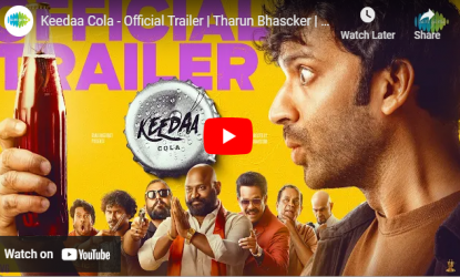 తరుణ్ భాస్కర్ దర్శకత్వంలో విభిన్నమైన కధాంశంతో తెరకెక్కుతున్న కీడాకోలా సినిమా ట్రైలర్ విడుదలైంది. ట్రైలర్ చూస్తే తెలంగాణ నేపధ్యంలో సాగే కధలో పుష్కలంగా కామెడీ ఉందని స్పష్టమైంది. బొద్దింక పడిన ఓ కూల్ డ్రింక్ బాటిల్ని అడ్డుపెట్టుకొని ఆ కంపెనీపై దావా వేసి సులువుగా డబ్బు సంపాదించేందుకు ఇద్దరు యువకుల ఆరాటాలు, వాటి కారణంగా కోర్టు కేసు, గల్లీ స్థాయి చవుకబారు రాజకీయాలు ట్రైలర్లో చూపించి తరుణ్ భాస్కర్ కాస్త గజిబిజీగానే అనిపించినప్పటికీ వీటన్నిటినీ బ్యాలన్స్ చేస్తూ సినిమాని తెరకెక్కించి ఉంటే, తరుణ్ భాస్కర్ కెరీర్లో ఇది మరో సూపర్ హిట్ కావచ్చు.
