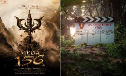 మెగాస్టార్ చిరంజీవి-వశిష్ట కాంబినేషన్లో మెగా 156వ చిత్రంగా తెరకెక్కుతున్న విశ్వంభర రెగ్యులర్ షూటింగ్ హైదరాబాద్లో బుధవారం మొదలైంది. ఈ సినిమాని నిర్మిస్తున్న యూవీ క్రియెషన్స్ సంస్థ ట్విట్టర్ ద్వారా ఈ విషయం అభిమానులకు తెలియజేస్తూ ‘క్లాప్ బోర్డు’ ఫోటో పెట్టింది. దానిలో 9వ సీన్ మొదటి షాట్, మొదటి టేక్ తీస్తున్నట్లు పేర్కొంది.