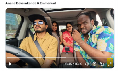 “విజయ్ దేవరకొండ తమ్ముడు మీకు తెలుసా?ఆయన తన అన్నని ఇమిటేట్ చేస్తాడట కదా?ఎలా యాక్ట్ చేస్తాడు? యావరేజ్ ఆట కదా? బేబీ సినిమాలో ఆనంద్ దేవరకొండ యాక్షన్ ఎలా ఉంది? ఆయన నటించిన గంగం గణేశా సినిమా మే 31న రిలీజ్ అవుతోంది మీకు తెలుసా?” అంటూ ఇమ్మానుయెల్ చిలిపి ప్రశ్నలు వేస్తుంటే కారు డ్రైవ్ చేస్తున్నది ఆనంద్ దేవరకొండ అని తెలియక అతని గురించి, అతని నటన, సినిమాల గురించి మనసులో ఉన్నది ఉన్నట్లు చెప్పేశారు.
