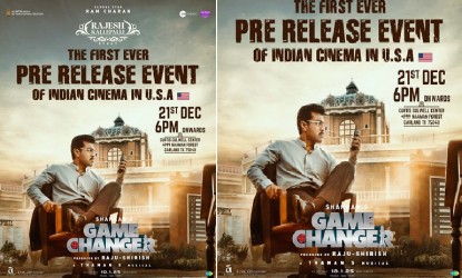 తొలిసారిగా అమెరికాలో ఓ భారతీయ సినిమా ప్రీ-రిలీజ్ ఈవెంట్ జరుగబోతోంది. అదే శంకర్ దర్శకత్వంలో రామ్ చరణ్, కియరా అద్వానీ జంటగా నటించిన ‘గేమ్ ఛేంజర్.’ ఈ సినిమా ప్రీ-రిలీజ్ ఈవెంట్ ఏపీలో కాకినాడ జిల్లాతో పాటు అమెరికాలో కూడా నిర్వహించబోతున్నారు.