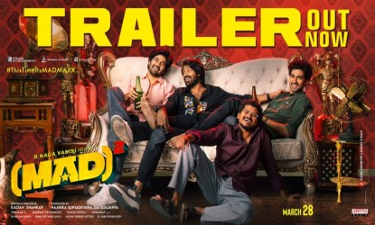 కళ్యాణ్ శంకర్ దర్శకత్వంలో నార్నె నితిన్, సంగీత శోభన్, రామ్ నితిన్, ప్రియాంక జవాల్కర్ ప్రధాన పాత్రలలో ‘మ్యాడ్ స్క్వేర్’ మరో 48 గంటల్లో అంటే శుక్రవారం విడుదల కాబోతోంది. కనుక ట్రైలర్ వదిలారు. టీజర్తోనే సినిమాపై అంచనాలు భారీగా పెరిగిపోగా ట్రైలర్ వాటిని మరింత పెంచేసింది. రెండు నిమిషాల ట్రైలర్ చూసి నవ్వకుండా ఉండటం చాలా కష్టమే. అందరూ పోటీపడుతున్నట్లుగా కామెడీ పండించారు.
